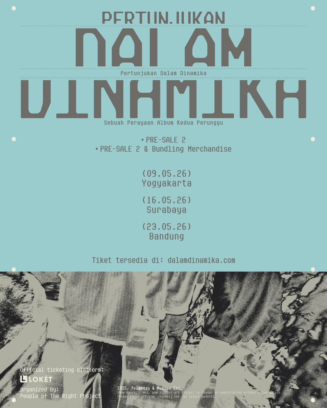 Pertunjukan “Dalam Dinamika” is the main live show from the “office-rock” band Perunggu, created to bring their second album, Dalam Dinamika, to life through an energetic, immersive concert. The 2026 show highlights the band’s artistic growth and collective spirit, with a setlist that mixes new experimental songs and fan favorites in a bigger, more theatrical production than their usual festival sets. Ticket prices depend on the city and venue size, but most range from Rp150,000 for early bird tickets to Rp350,000 for VIP packages, which often include exclusive “Dalam Dinamika” merchandise. This event is more than just a concert; it’s a special gathering for the “Merunggu” community to experience the band’s journey in a space that focuses on clear sound and personal stories.
