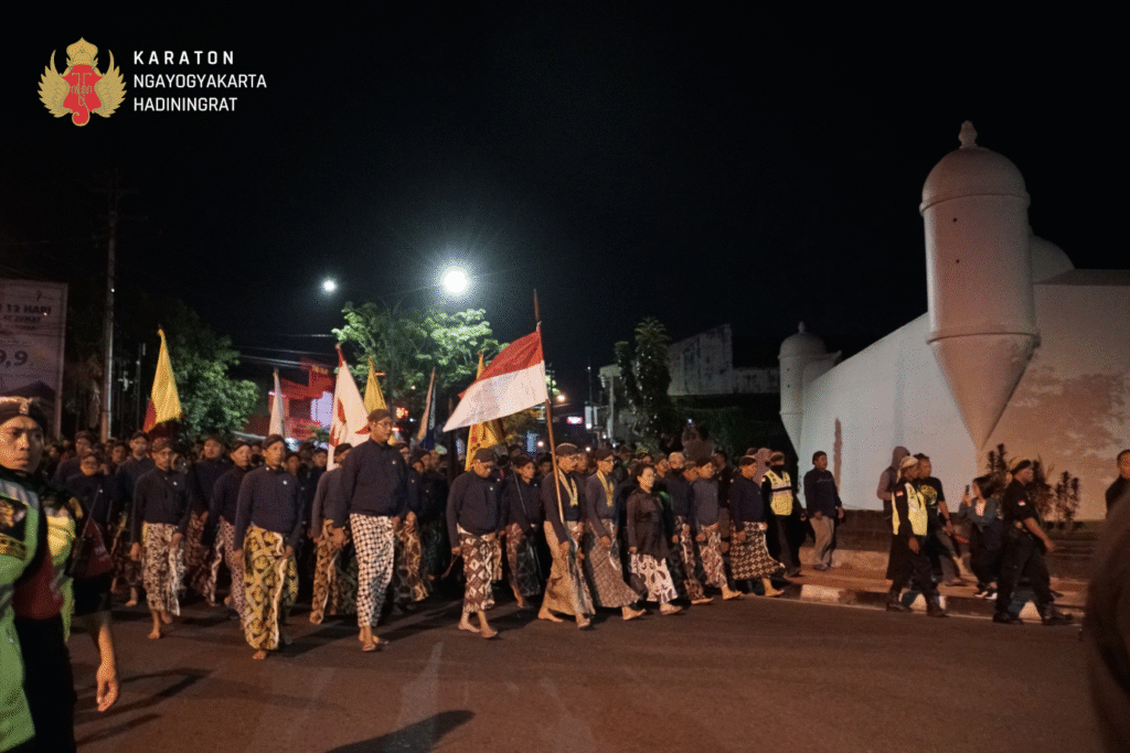 On the eve of Satu Suro, the Keraton Yogyakarta holds a solemn ritual known as Lampah Budaya Mubeng Beteng. This sacred procession involves walking barefoot in silence, circling the palace fortress in a counterclockwise direction. It is performed by the Abdi Dalem (royal servants) along with members of the local community, symbolizing spiritual reflection and purification.