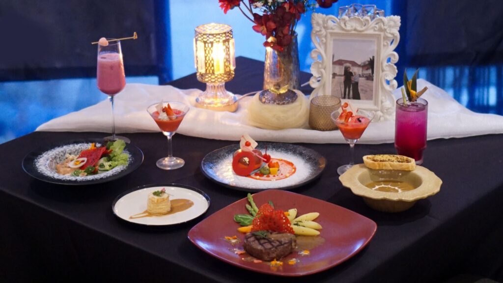 The Valentine’s Dinner at PORTA by Ambarrukmo is priced from IDR 399,000 per couple. The menu features Blue Ocean Salad, Mushroom Soup, your choice of Roasted Brazilian Chicken or Stir-Fried Barramundi, a mocktail, and both cake and dessert.